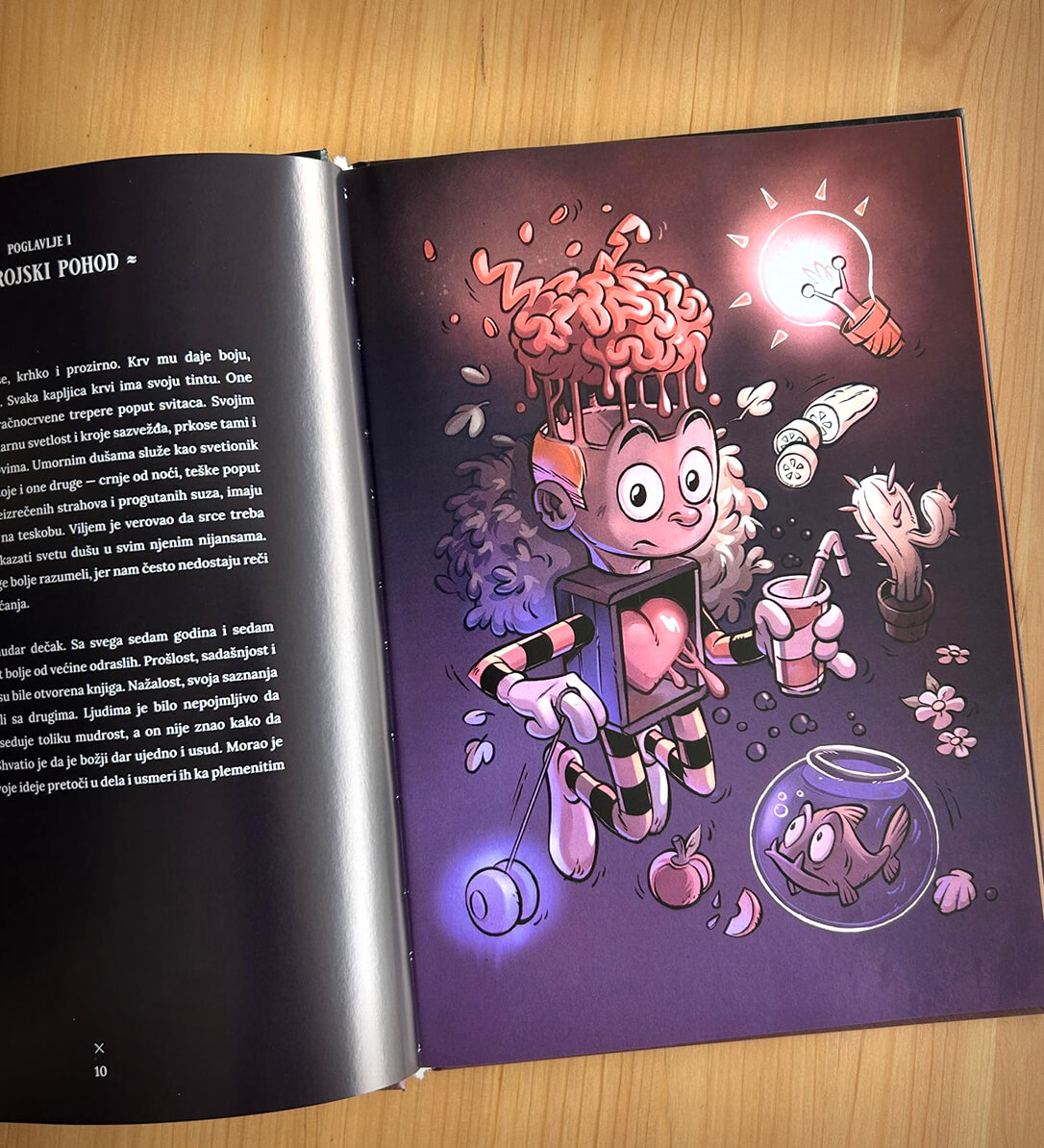 Strast i posvećenost koje zrače iz ove grafičke bajke mogu poslužiti kao inspiracija svakome ko želi da se kreativno izrazi! Otvoren, topao i potpuno iskren sa čitaocem, Uroš nam nudi svoj umetnički i pripovedački dar na način koji dolikuje hrabrom i zrelom autoru. Ne propustite!
